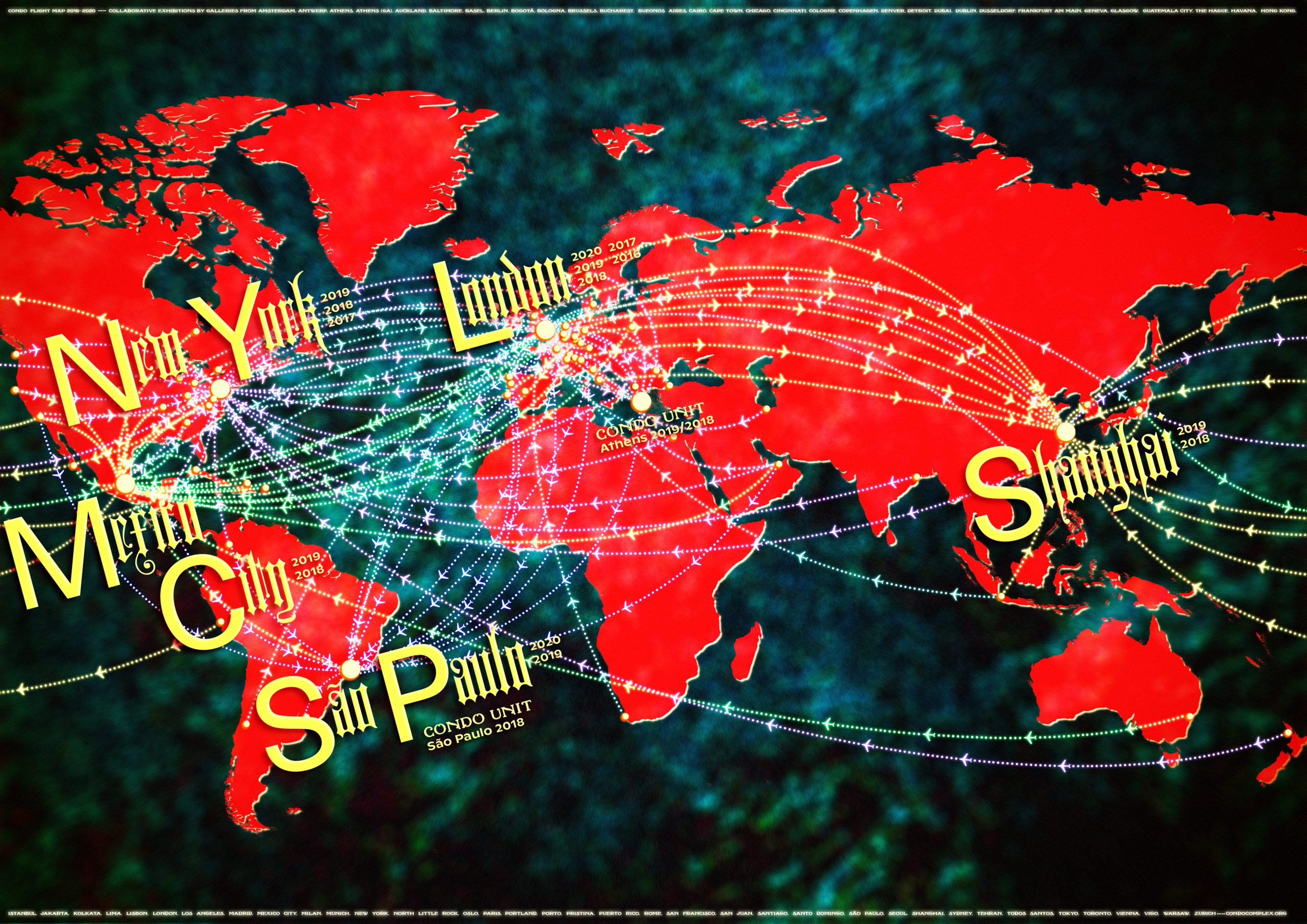 Condo takes its name from ‘condominium’ and is a large-scale collaborative exhibition of international galleries. Host galleries share their spaces with visiting galleries – either by co-curating an exhibition together, or dividing their galleries and allocating spaces. The initiative encourages the evaluation of existing models, pooling resources and acting communally to propose an environment that is more conducive for experimental gallery exhibitions to take place internationally. site ![]()